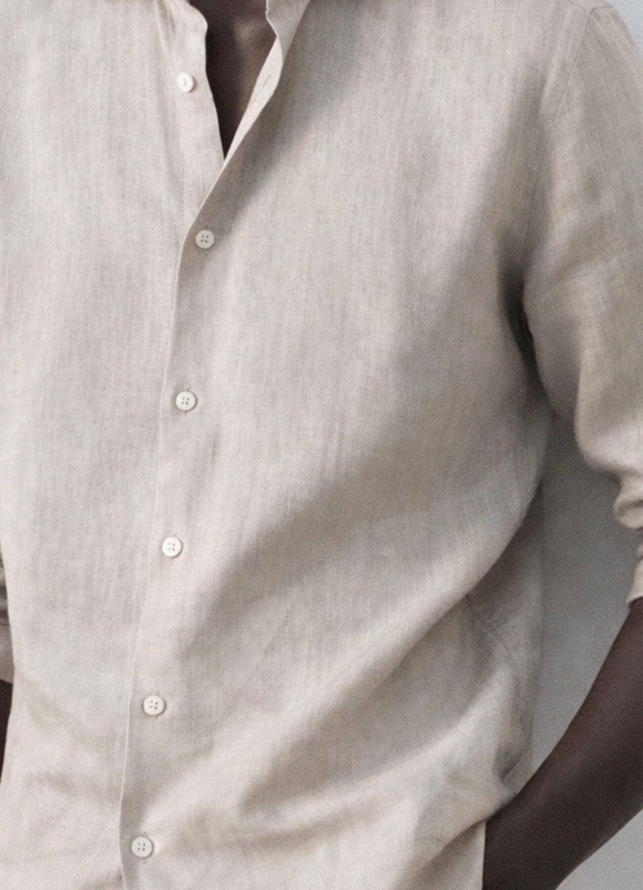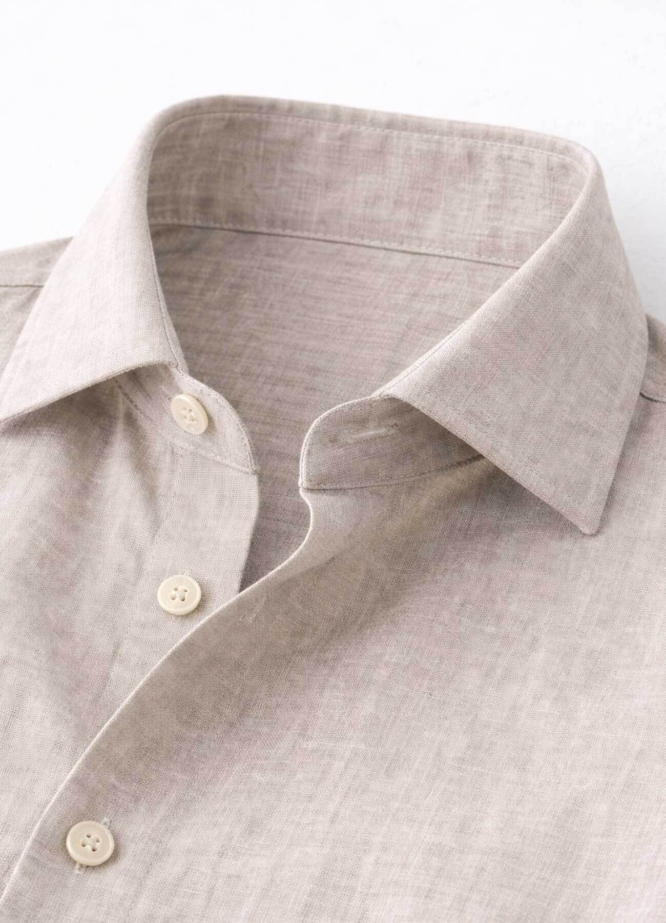 Bej Renk Uzun Kol Keten Gömlek